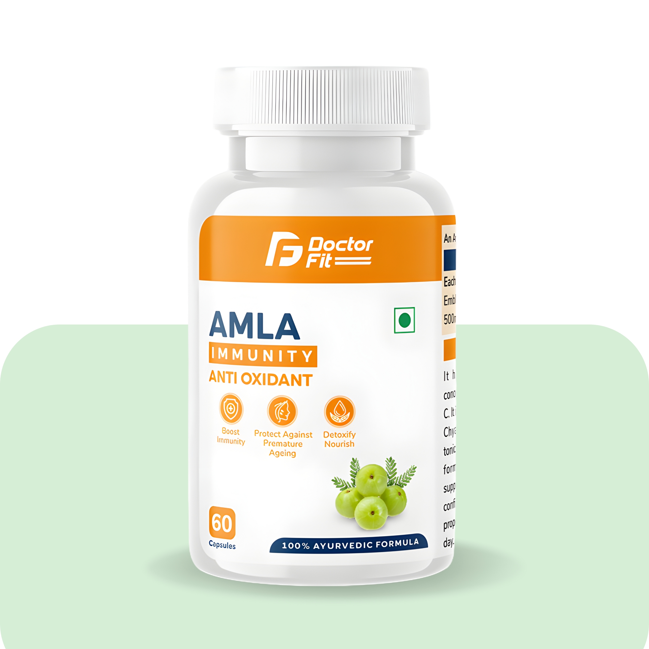 Doctor Fit Amla Capsules are a 100% Ayurvedic supplement enriched with natural Vitamin C and antioxidants to help boost immunity, protect against premature ageing, and detoxify the body. It nourishes skin, hair, and overall health while supporting vitality and wellness naturally.