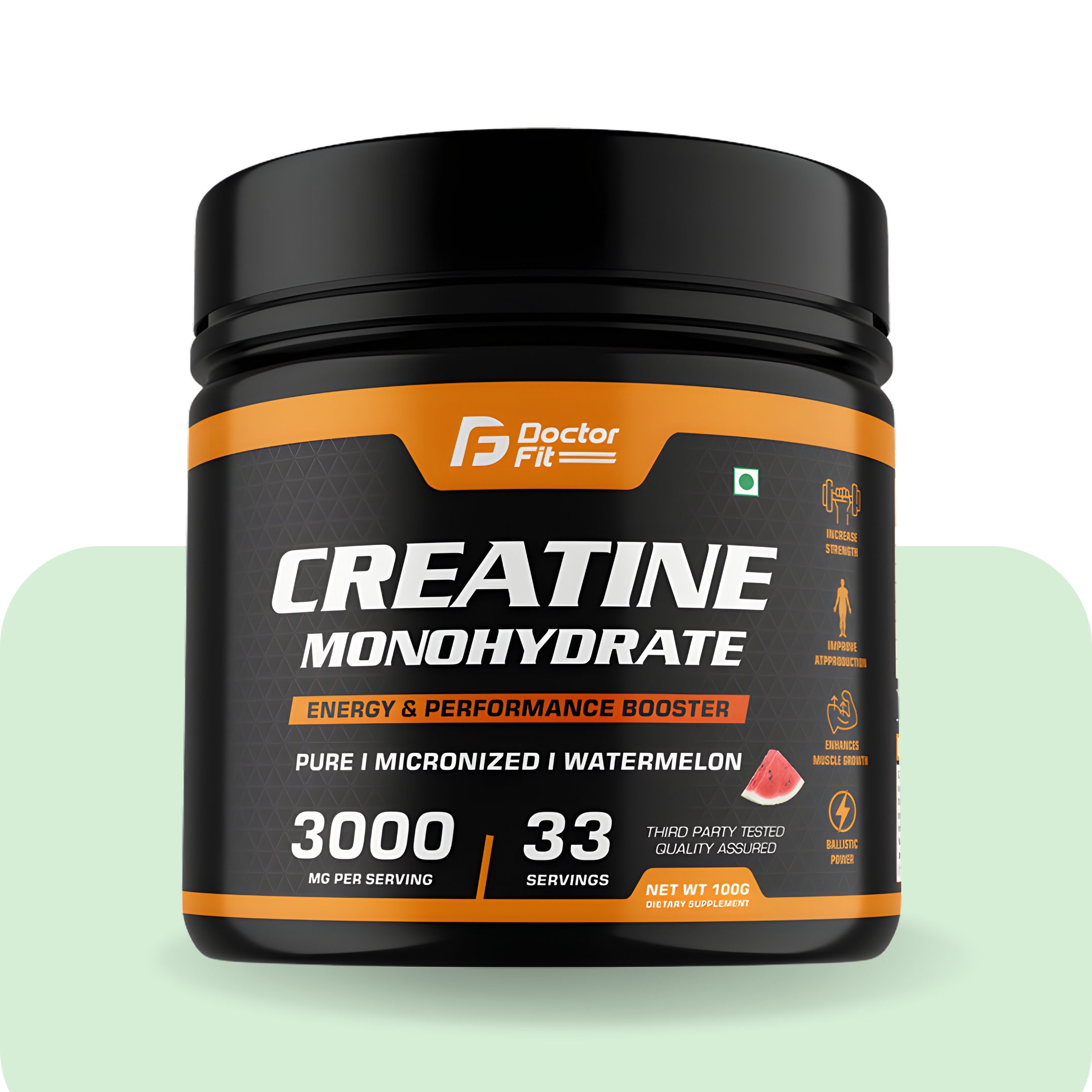 Doctor Fit Creatine Monohydrate is a pure, micronized performance booster that delivers 3000 mg of creatine per serving to enhance strength, endurance, and muscle growth. Designed to improve workout power and recovery, it comes in a refreshing watermelon flavour for a tasty pre- or post-workout energy boost.
