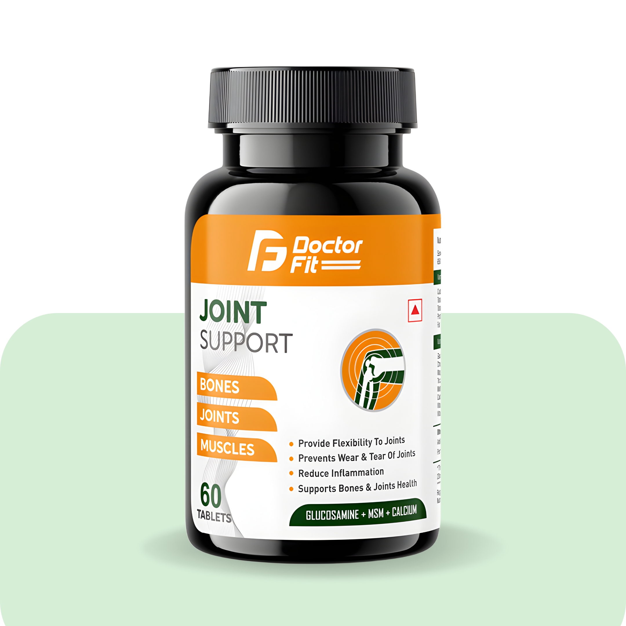 Doctor Fit Joint Support is a powerful blend of Glucosamine, MSM, and Calcium that helps improve joint flexibility, reduce inflammation, and prevent wear and tear of joints. It supports bone strength and muscle health, promoting overall mobility and joint comfort for an active lifestyle.