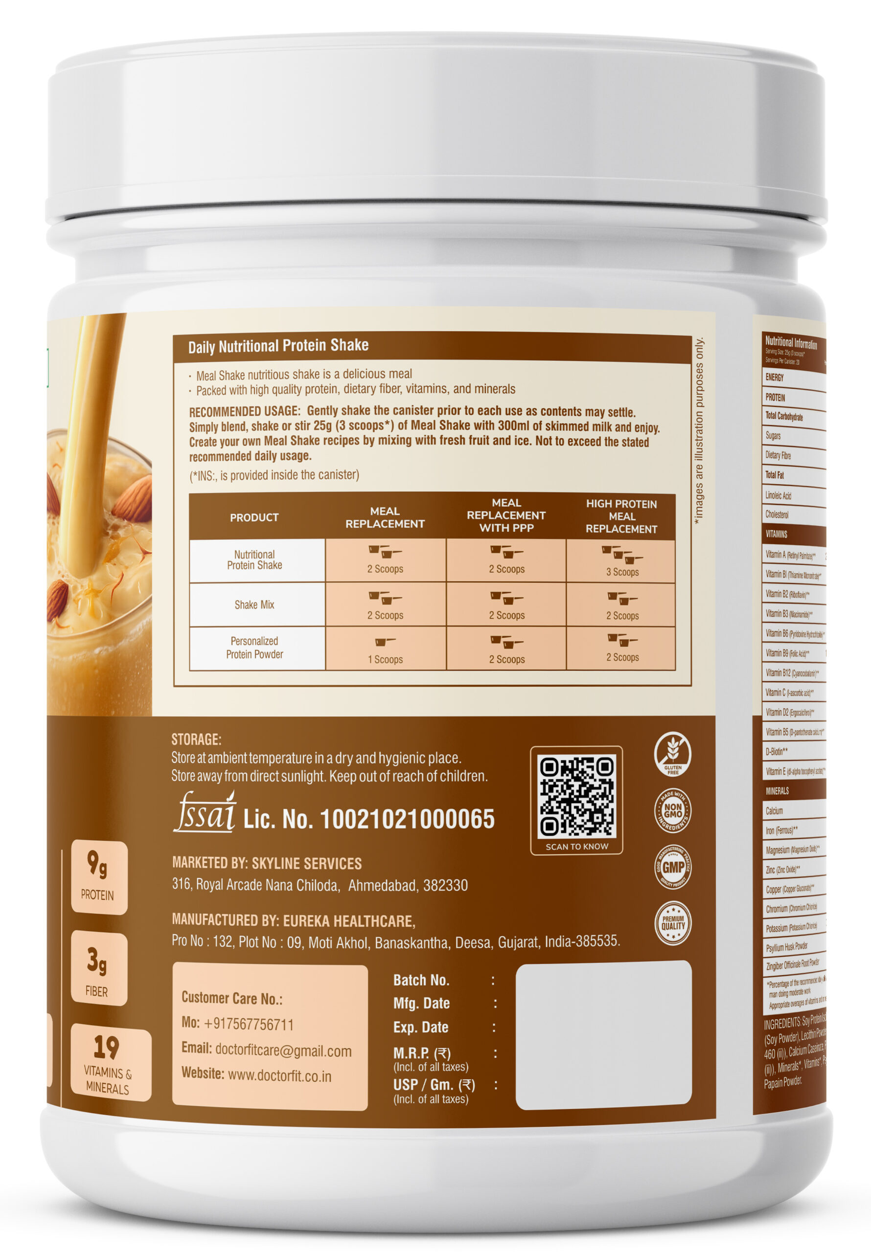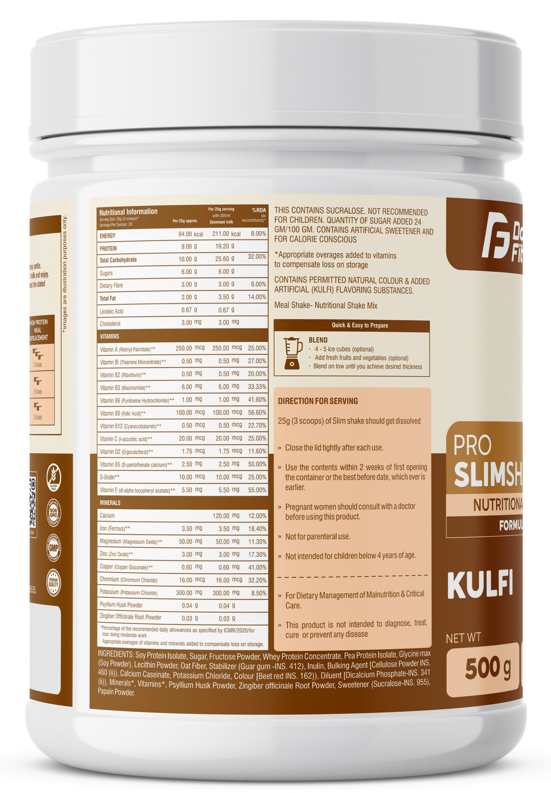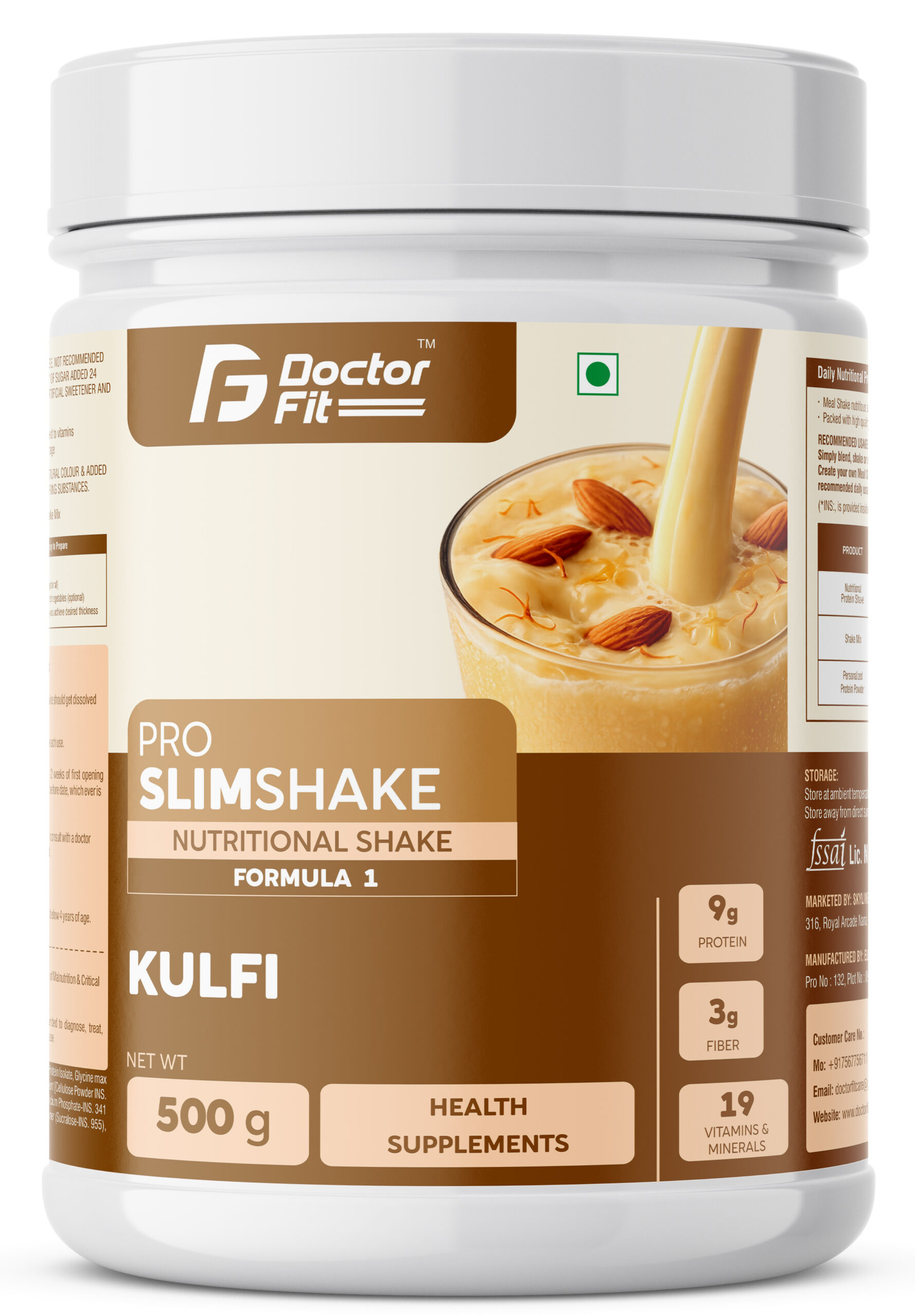 Doctor Fit Pro SlimShake is a delicious nutritional shake designed to support healthy weight management. Packed with 9g protein, 3g fiber, and 19 essential vitamins & minerals, it helps you stay full, energized, and nourished. Enjoy the refreshing kulfi flavor while boosting your daily nutrition the smart and tasty way.