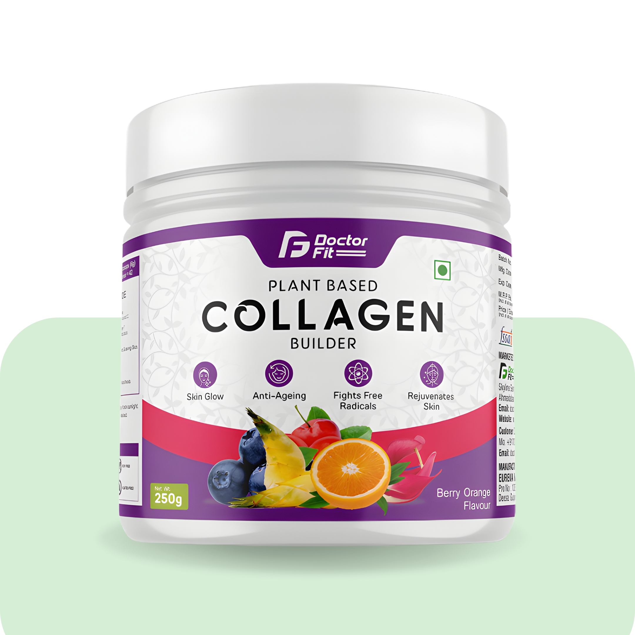 Doctor Fit Plant-Based Collagen Builder is a natural, vegan-friendly formula enriched with antioxidants and vitamins that support skin elasticity, reduce signs of ageing, and promote a healthy glow. With a refreshing Berry Orange flavour, it helps fight free radicals and rejuvenate skin from within for youthful radiance.
